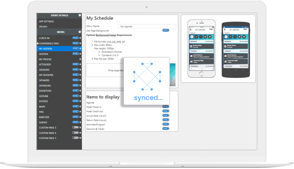 Once you create your program event website in Lenos Studio, virtual, in-person or hybrid, a simple one click automatically generates your native mobile app!